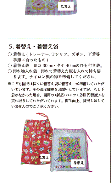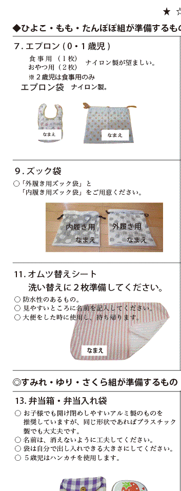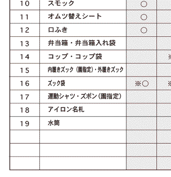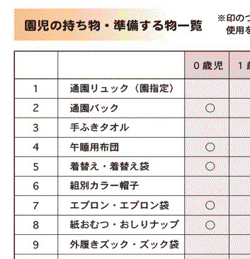 持ち物一覧